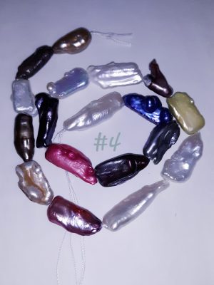 16″ strand of Freshwater Pearls; Brand New, Never Used; $6.00/strand; only 1 strand available; Each bead is 16mm long and 6-8mm wide; Beautiful colors of white, magenta, brown, fluorescent blue, silver and black; Lots of texture for your design; Pet-friendly, non-smoking home; will ship via USPS Priority Mail; shipping is $5.00; I combine shipping.
